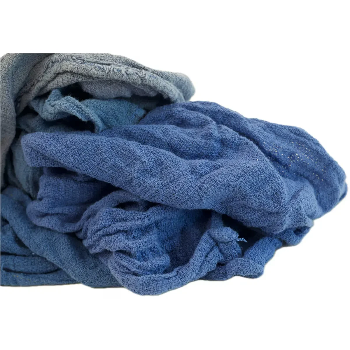 Okey Rags’ Recycled Blue Surgical Huck Rags are heavy-duty, prewashed cotton cleaning rags made from recycled material — ideal for commercial and industrial cleaning tasks.